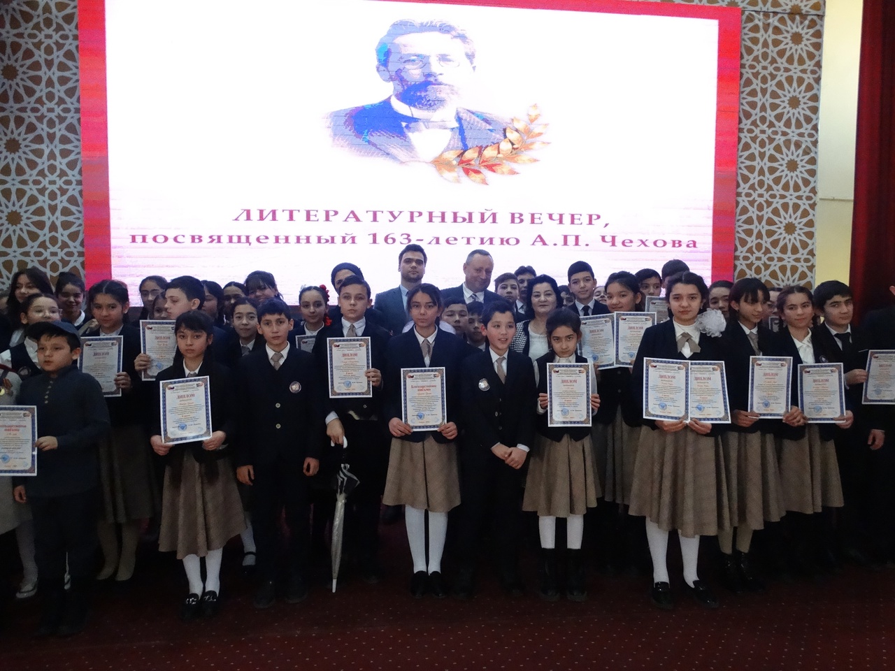 На литературном вечере наши учащиеся рассказали о великом писателе, драматурге и враче. Помимо этого, были показаны лучшие сценки учащихся по произведениям А.П. Чехова. Особую атмосферу залу привнёс хор с песнями про школу и доброту.