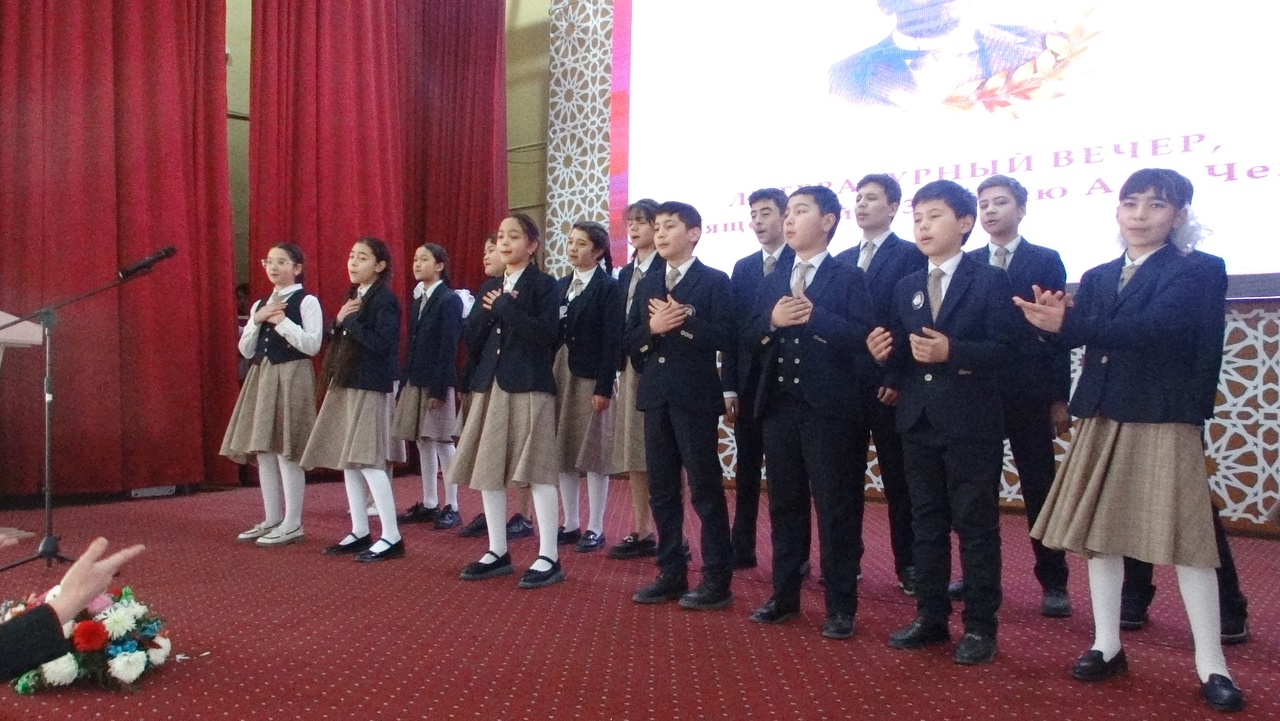 Сегодня, 28.01.2023г., в актовом зале Таджикского государственного университета права, бизнеса и политики (ТГУПБП) мы провели литературный вечер, посвящённый 163-летию А.П. Чехова.На литературный вечер были приглашены учителя и родители наших учащихся. Кроме того, нашими гостями были: вице-консул генерального консульства в г. Худжанде - Вольф Сергей Владимирович, атташе Японов Никита Дмитриевич и координатор образовательных программ Русского Дома в Худжанде - Сатторова Фируза Масудовна.